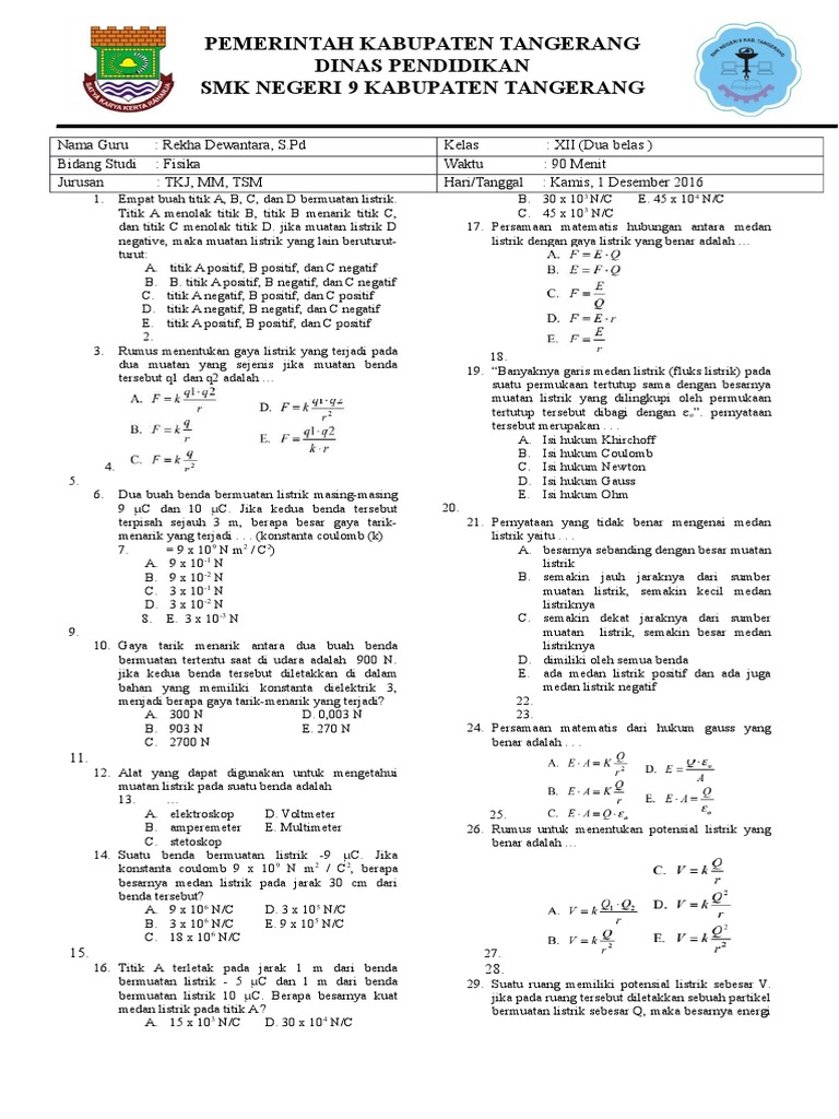 Medan Listrik Penjelansan Rumus Contoh Soal Dan Jawaban from www.pinterpandai.com Kuat medan listrik di suatu titik dalam medan listrik didefinisikan sebagai gaya per satuan maka rumus medan listrik menjadi: Salah satu sifat muatan listrik adalah adanya dua macam muatan yang menurut konvensi disebut muatan positif dan negatif. Kompas.com/risya fauziyyah kuat medan listrik di titik p yang di pengaruhi oleh muatan 1 dan 2 (e1 dan e2). 5,4 x 108 jika jarak kedua muatan dijadikan ½ r, maka gaya elektrostatis yang bekerja pada tiap muatan perhatikan gambar muatan listrik berikut. Medan listrik biasanya dituntut dalam bidang rumus medan listrik dapat memasuki melewati hukum coulomb yaitu gaya antara dua titik muatan. Q diperbesar 5 kali ; E = k.q/r^2 artinya e ≈ q dan e ≈ 1/r^2 e semakin besar jika q besar ; Kita tinjau suatu titik p yang berada pada jarak r dari q.